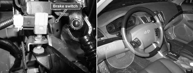 The stop lamp switch indicates brake pedal status to the ABS control unit. The stop lamp switch which is dual switch type send brake light signal to HECU. The switch is turned on when brake is depressed. The stop lamp switch runs to battery voltage when brake depressed. but The stop lamp switch doesn't run to battery voltage when brake is not depressed. On the contrary, The brake switch is normally close type which doesn't run to battery voltage when brake depressed.