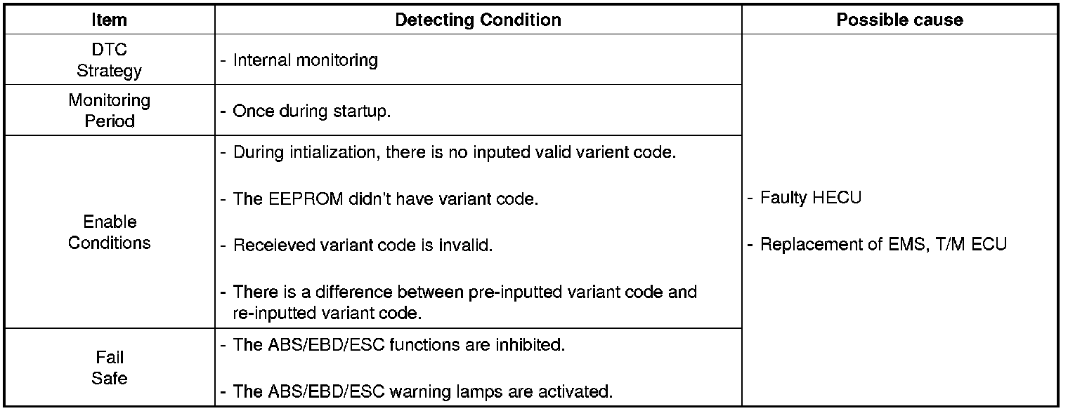The HECU checks the variant code after ignition. If a inappropriate variant code is detected or there is no variant code, a fault is detected.