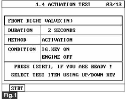 4. Inspect operating status of Front right valve (in) with Actuation Test.