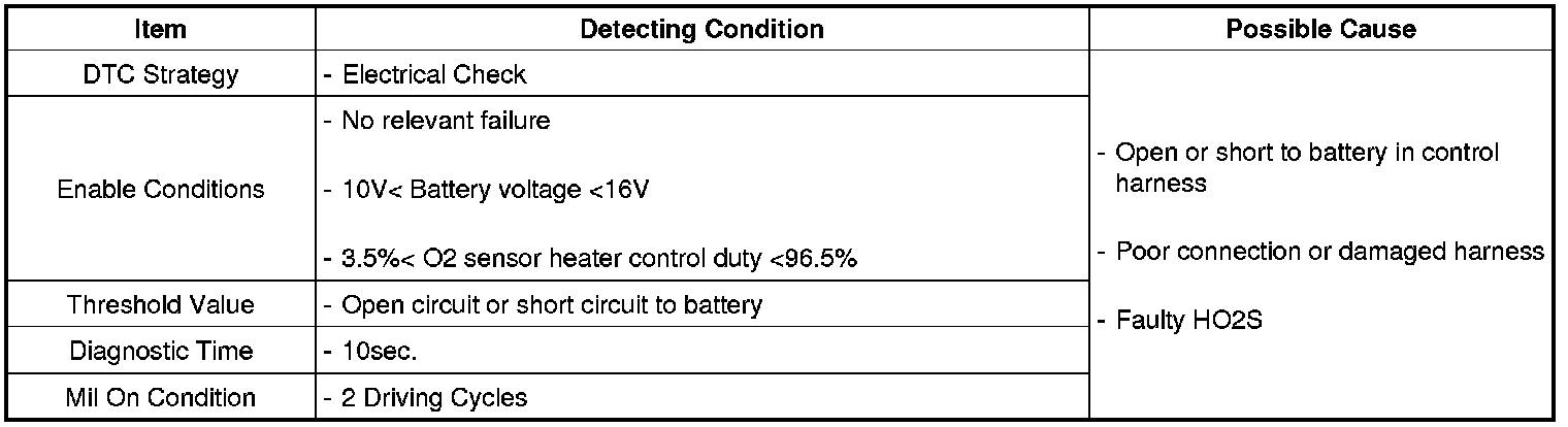 PCM sets DTC P0038 if the PCM detects that the rear HO2S heater control line is open or short to battery line.