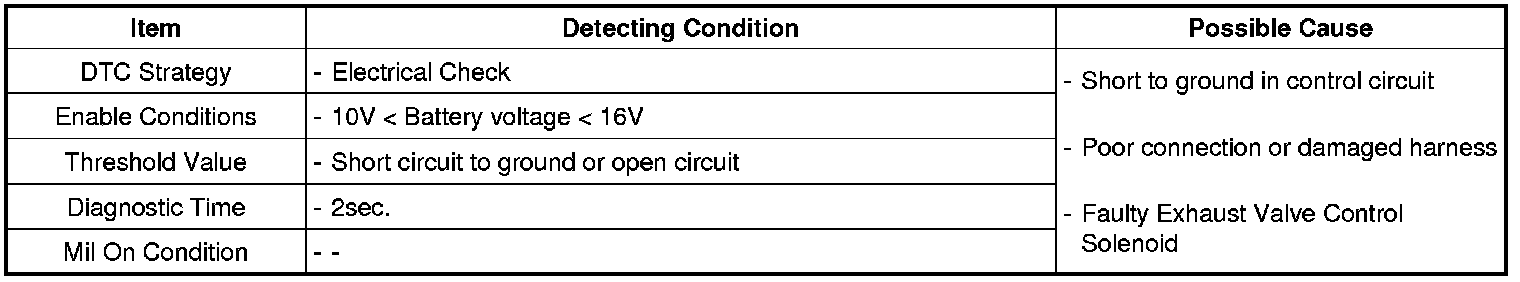 PCM sets DTC P0079 if the PCM detects that the exhaust valve control solenoid control circuit is short to ground.