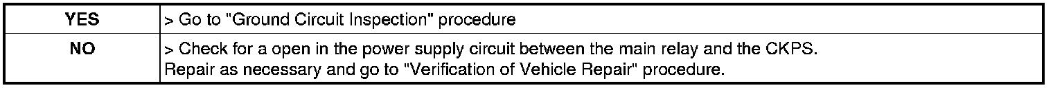 4. Measure voltage between power terminal of CKPS harness connector and chassis ground.