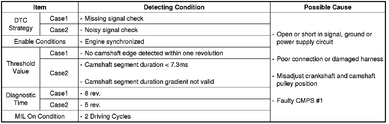 2 There are 3 - 5 signals of CKPS between the switching point of CMPS #1 and the missing tooth of CKPS.