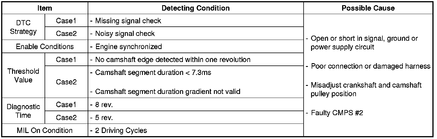 2 There are 3 - 5 signals of CKPS between the switching point of CMPS #2 and the missing tooth of CKPS.