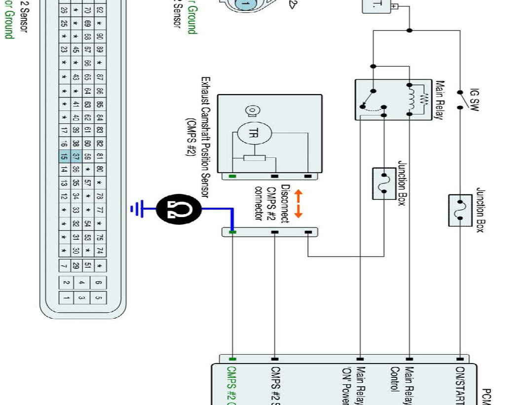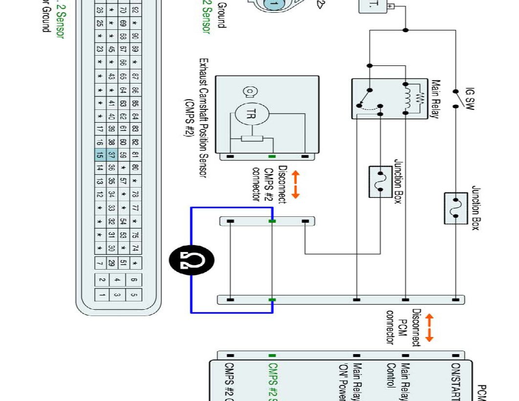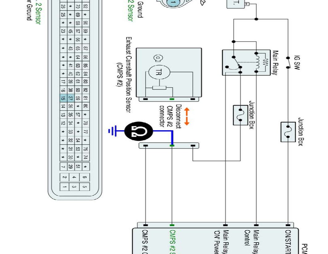 (2) Measure resistance between signal terminal of CMPS #2 harness connector and CMPS #2 signal terminal of the PCM connector.
