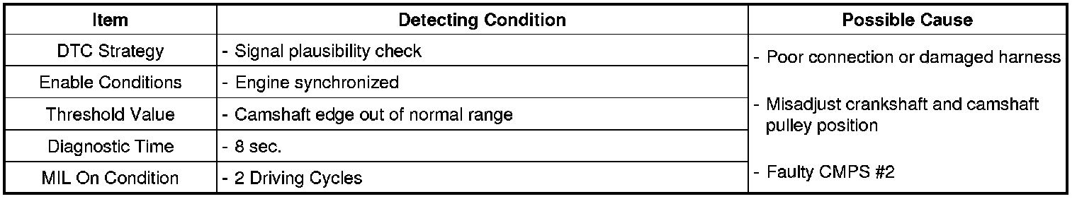 If the PCM receives an incorrect number of pulses on the exhaust camshaft position sensor, DTC P0366 will set.
