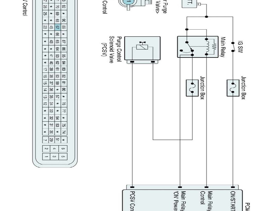 The evaporative emission control system prevents hydrocarbon (HC) vapors from the fuel tank from escaping into the atmosphere where they could form photochemical smog. Gasoline vapors are collected in the charcoal canister. The PCM controls the Purge Control Solenoid Valve (PCSV) to purge any collected vapors from the canister back to the engine for combustion. This valve is actuated by the purge control signal from the PCM and controls fuel vapor flow from the canister to the intake manifold.