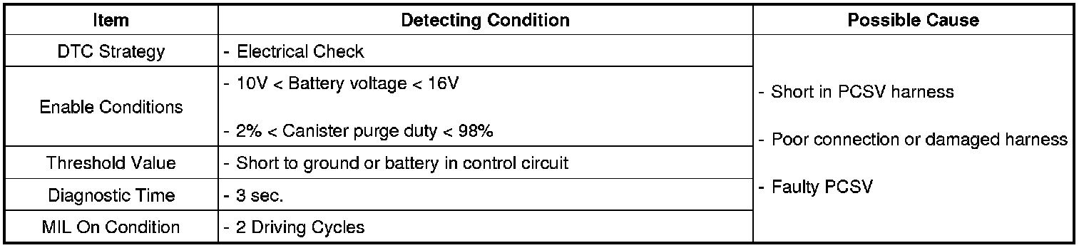 PCM sets DTC P0445 if the PCM detects that the PCSV control circuit is shorted to ground or shorted to battery voltage.