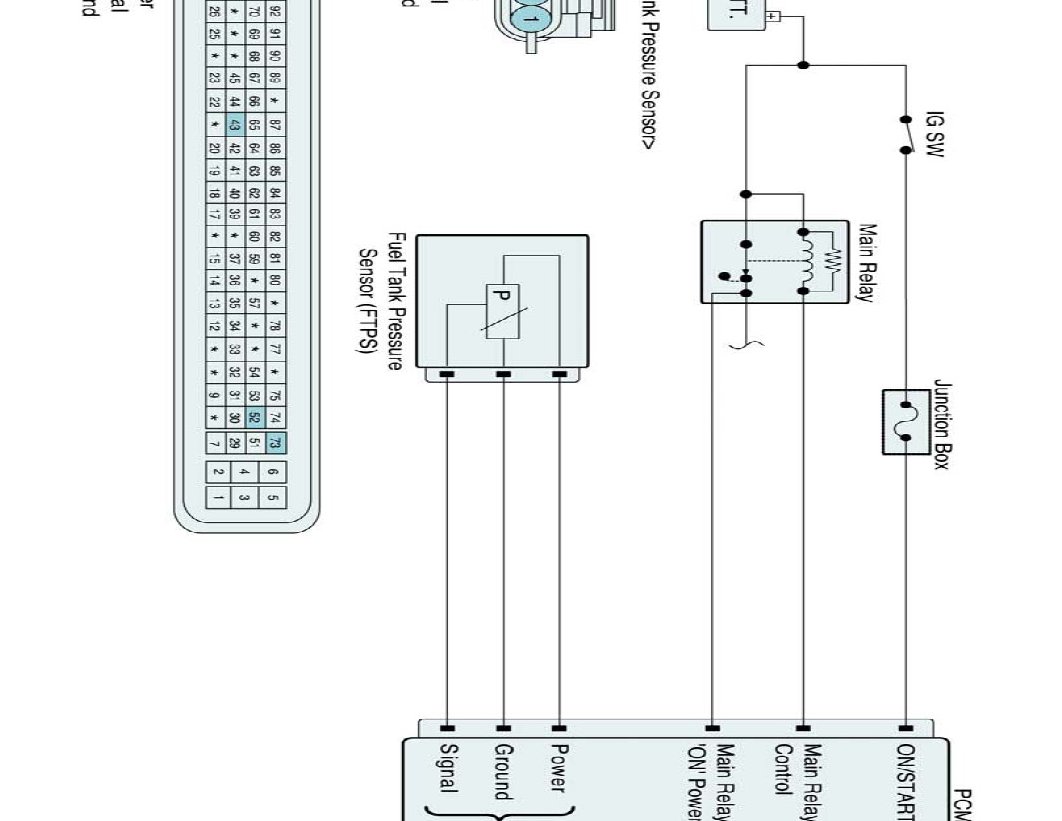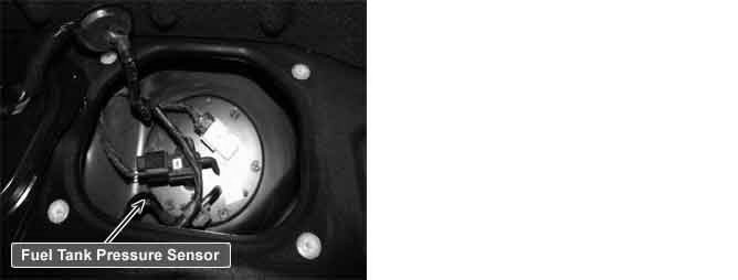 The evaporative emission control system prevents hydrocarbon vapors from escaping from the fuel tank into the atmosphere where they could form photochemical smog. Gasoline vapors are collected in the charcoal canister. The Fuel Tank Pressure Sensor (FTPS) is an integral part of the evaporative monitoring system. The PCM monitors the FTPS signal to detect vacuum decay and excess vacuum. The FTPS measures the difference between the air pressure inside the fuel tank and outside air pressure to check the purge control solenoid valve operation and for leak detection in the evaporative emission control system by monitoring pressure and vacuum levels in the fuel tank during the purge control solenoid valve operating cycles.