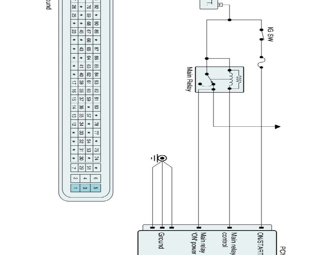 The PCM provides ground to one side of the coil of the main relay and the other side is connected to the battery. The PCM monitors battery voltage and the voltage after the main relay.