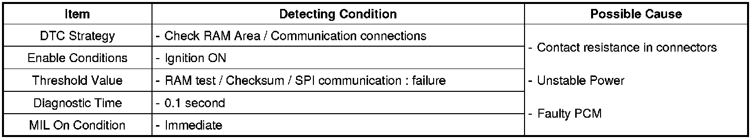 The PCM monitors RAM areas and communication connections between micro controller and output drivers and sets DTC P0605 if failure is detected.
