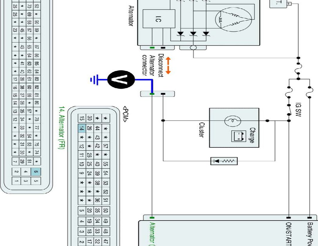 3. Measure voltage between FR terminal of the alternator harness connector and chassis ground.