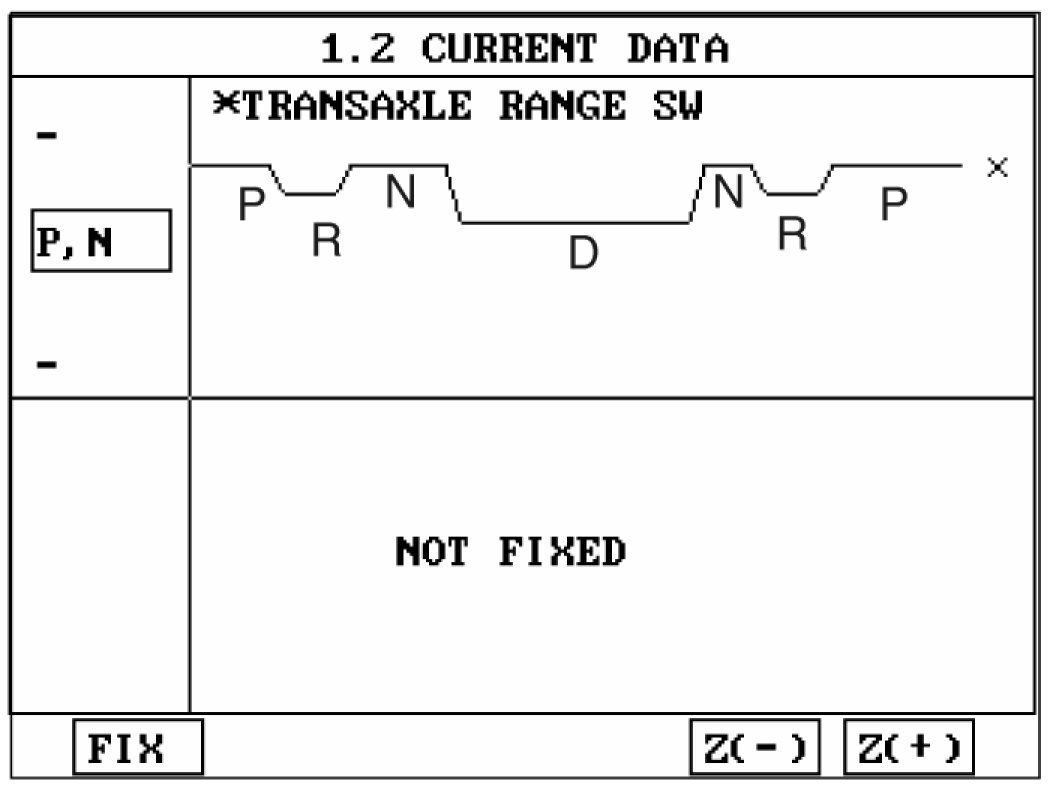 3. Monitor the "TRANSAXLE RANGE SWITCH" parameter on the scantool