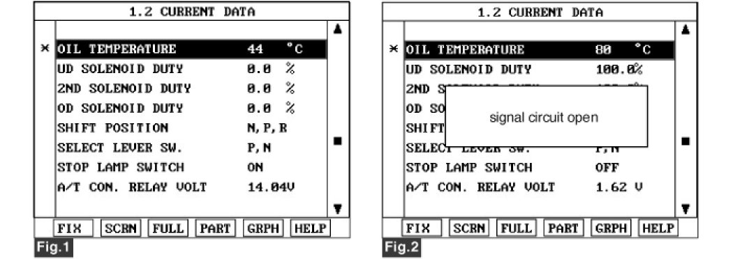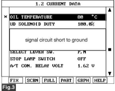 3. Monitor the "TRANSAXLE FLUID TEMPERATURE SENSOR" parameter on the scantool