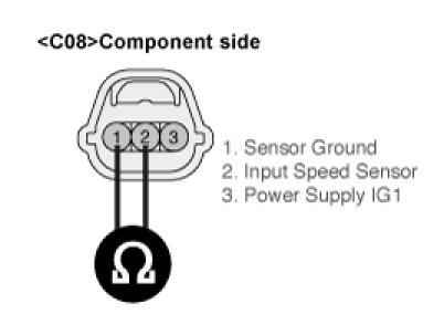 3. Measure resistance between terminal "1", "2" and "2", "3' and "1", "3" of the "INPUT SPEED SENSOR" connector.