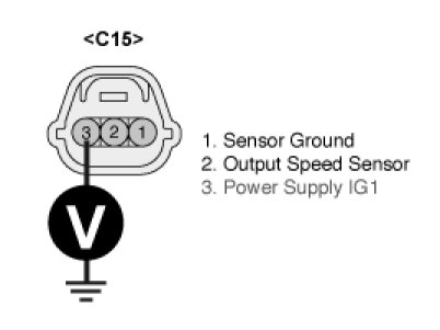 3. Measure voltage between terminal "3" of the "OUTPUT SPEED SENSOR" harness connector and chassis ground.
