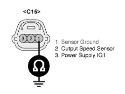 3. Measure resistance between terminal "1" of the OUTPUT SPEED SENSOR harness connector and chassis ground.
