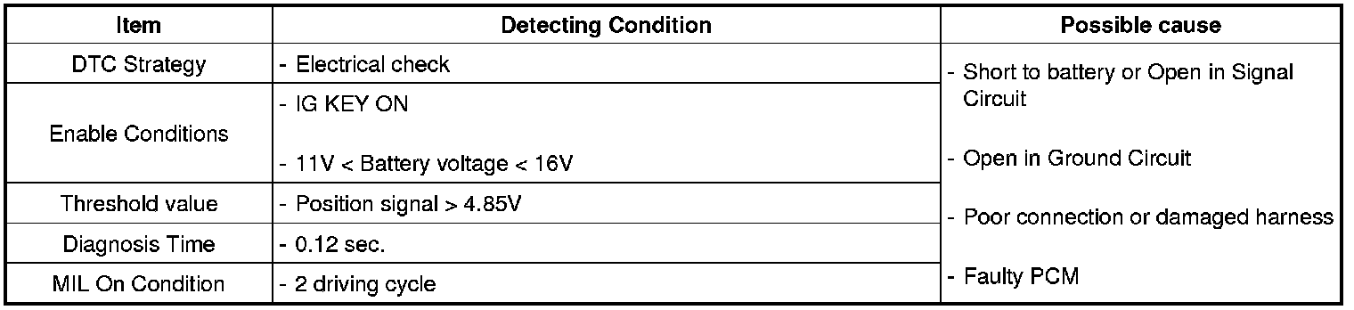 If PCM detects that the position signal line is short to battery or open, It sets P2016.