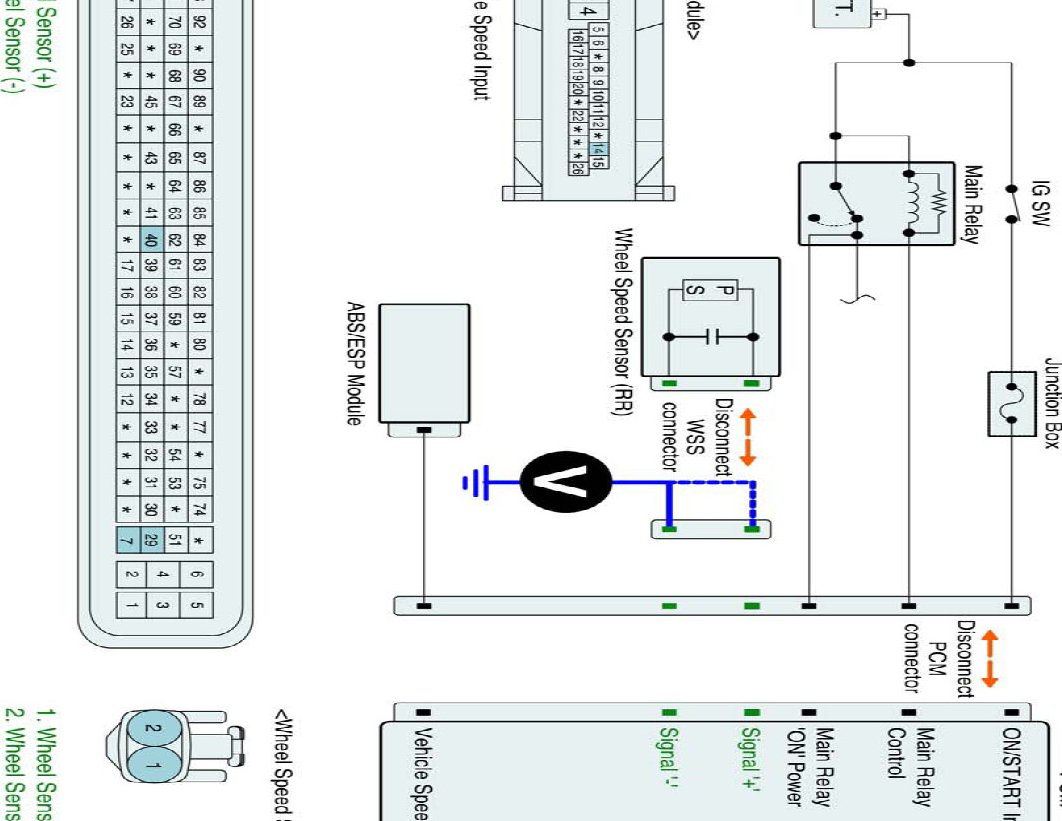 (2) Disconnect PCM and wheel speed sensor (front right) harness connector.