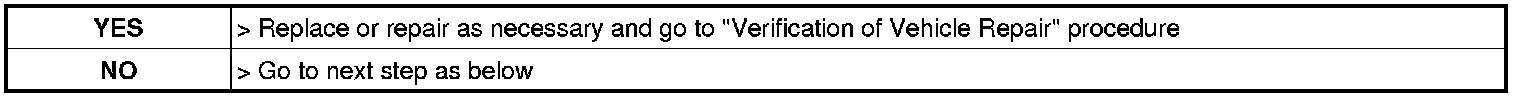 5. If test result is NG, repair or replace as necessary and go to "Verification of Vehicle Repair" procedure.