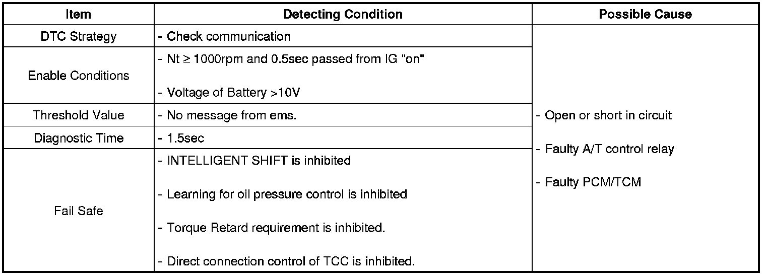 When the TCM cannot read the data from the ECM through the CAN-BUS line, the TCM sets this code.