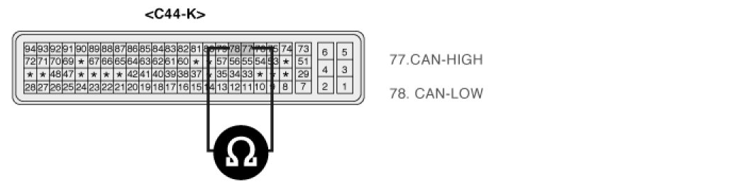 3. Measure resistance between terminal "77" and "78" of the "PCM/TCM" harness connector.