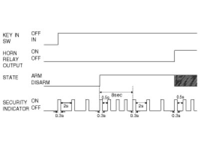 (3) After entering to ARM, the first 8s-TIMER is not reset when receiving RKE LOCK or KEY LOCK signal during the cycle: 0.3s ON, 0.5s OFF in the first 8s.