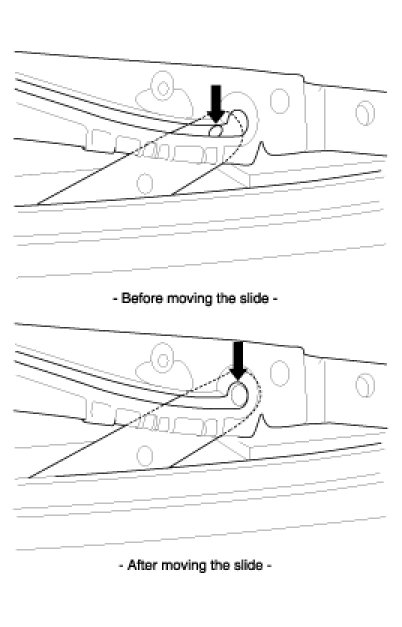 3. After moving the slide 5mm forward, turn OFF the switch and push the UP switch (Keeping on pushing the switch with continuous operation).