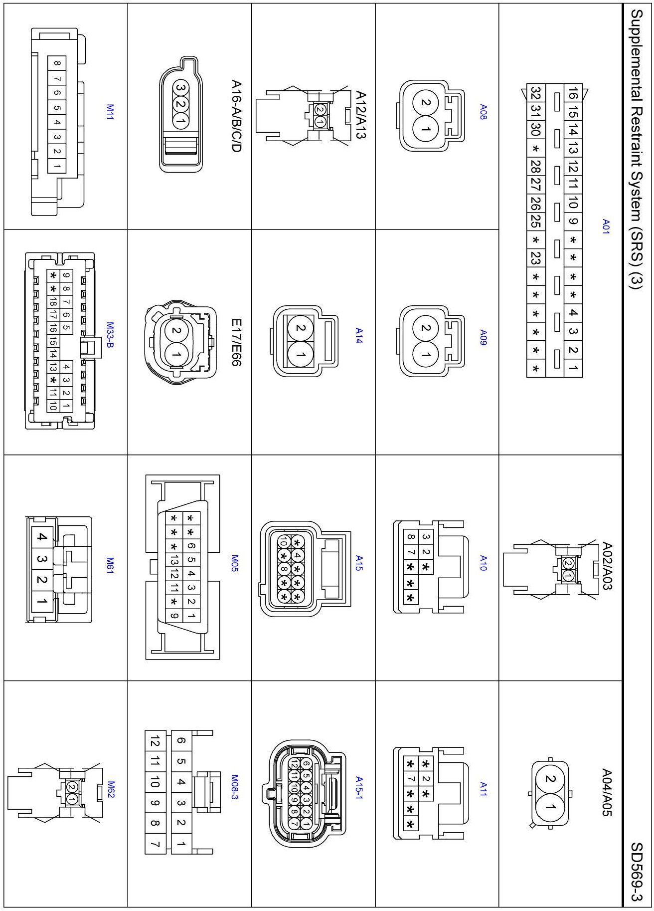 Supplemental Restraint System (SRS) (3) Connector Pin Outs: