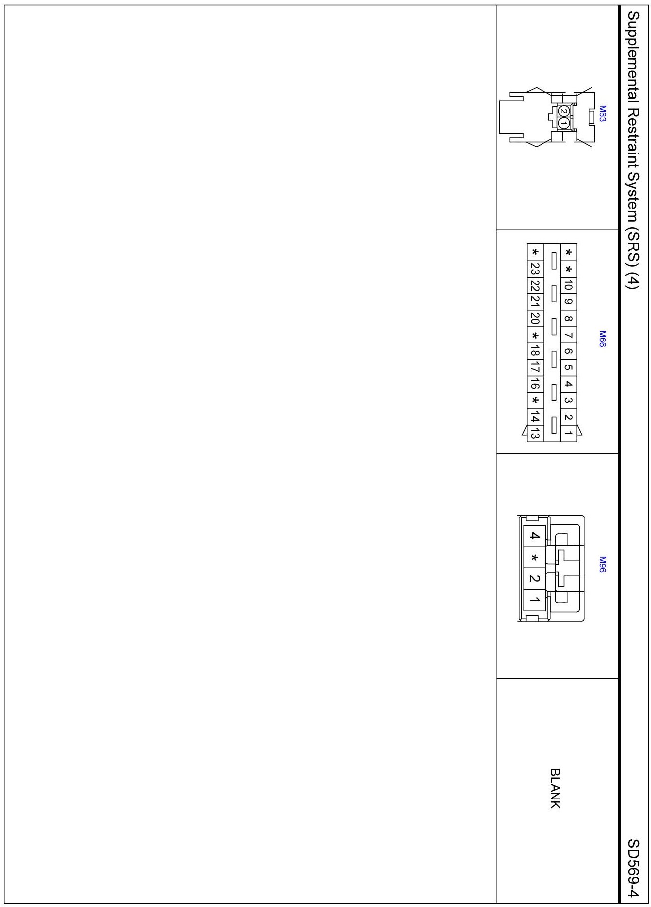 Supplemental Restraint System (SRS) (4) Connector Pin Outs:
