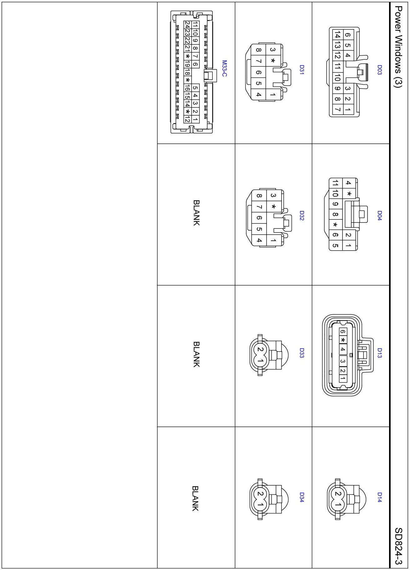 Power Windows (3) Connector Pin Outs: