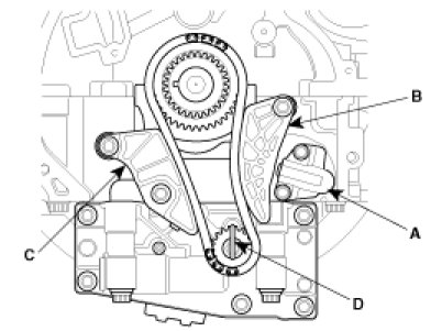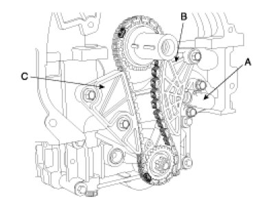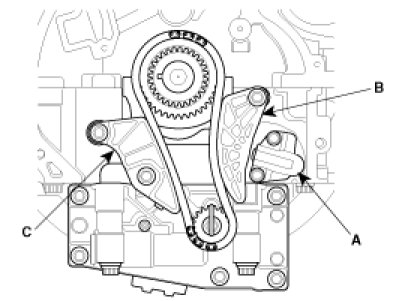 4. Remove the balance shaft chain guide (C).