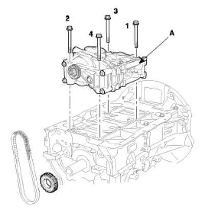 3. Remove the balance shaft chain hydraulic tensioner (A).