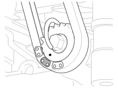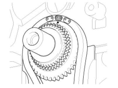 3. Install the balance shaft module that the timing mark of balance shaft module sprocket should be matched with timing mark (color link) of balance shaft chain.
