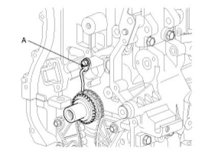 6. Install the timing chain auto tensioner (A) and remove the set pin.