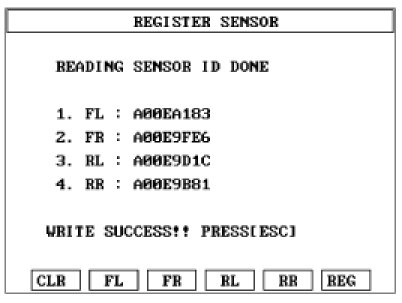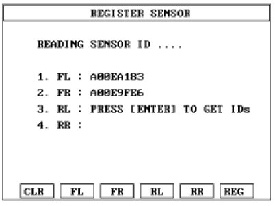 2. Read the four sensor's ids starting with sensor 1 (1 normally front left, 2 front right, 3 rear left, 4 rear right).