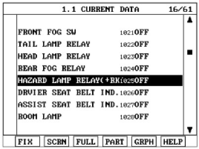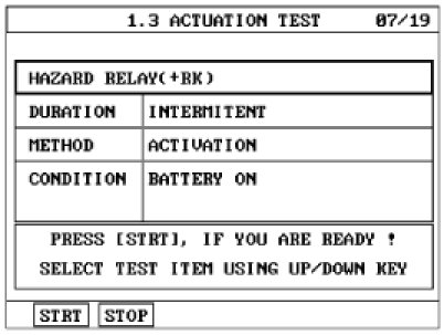4. To check the input value of hazard lamp switch in force mode, select option "ACTUATION TEST".