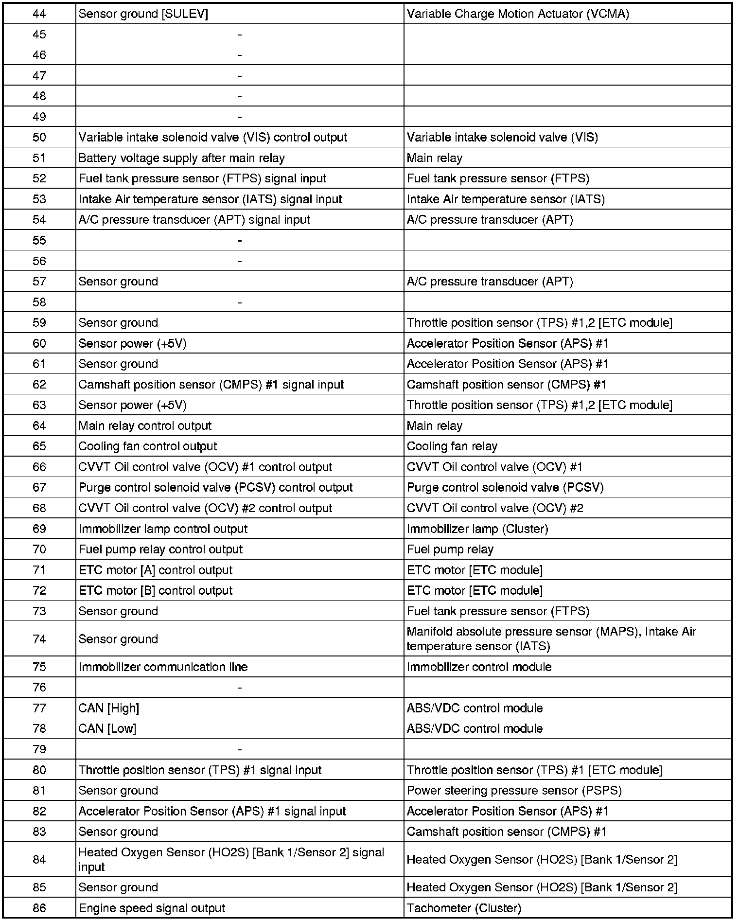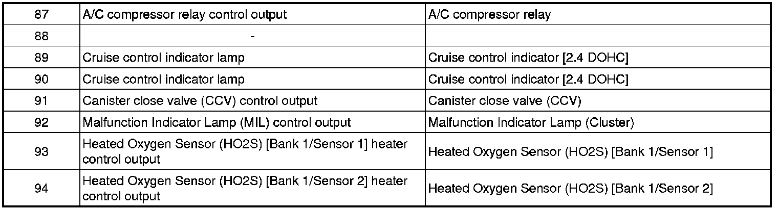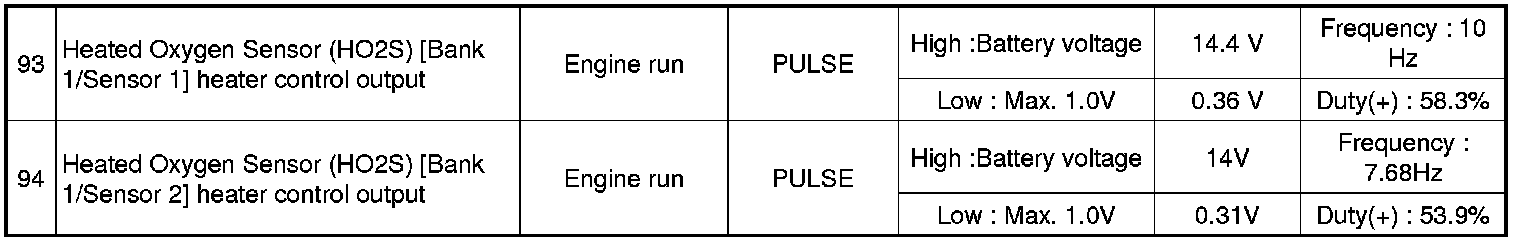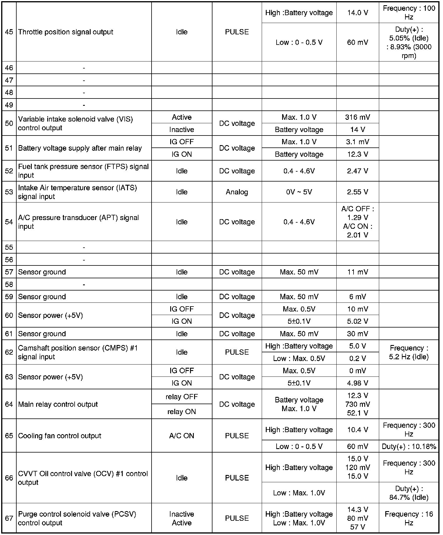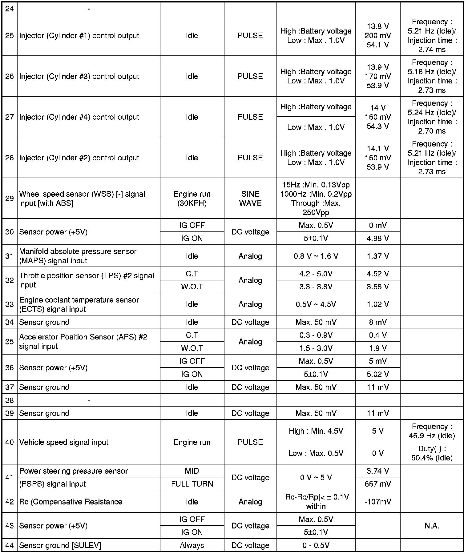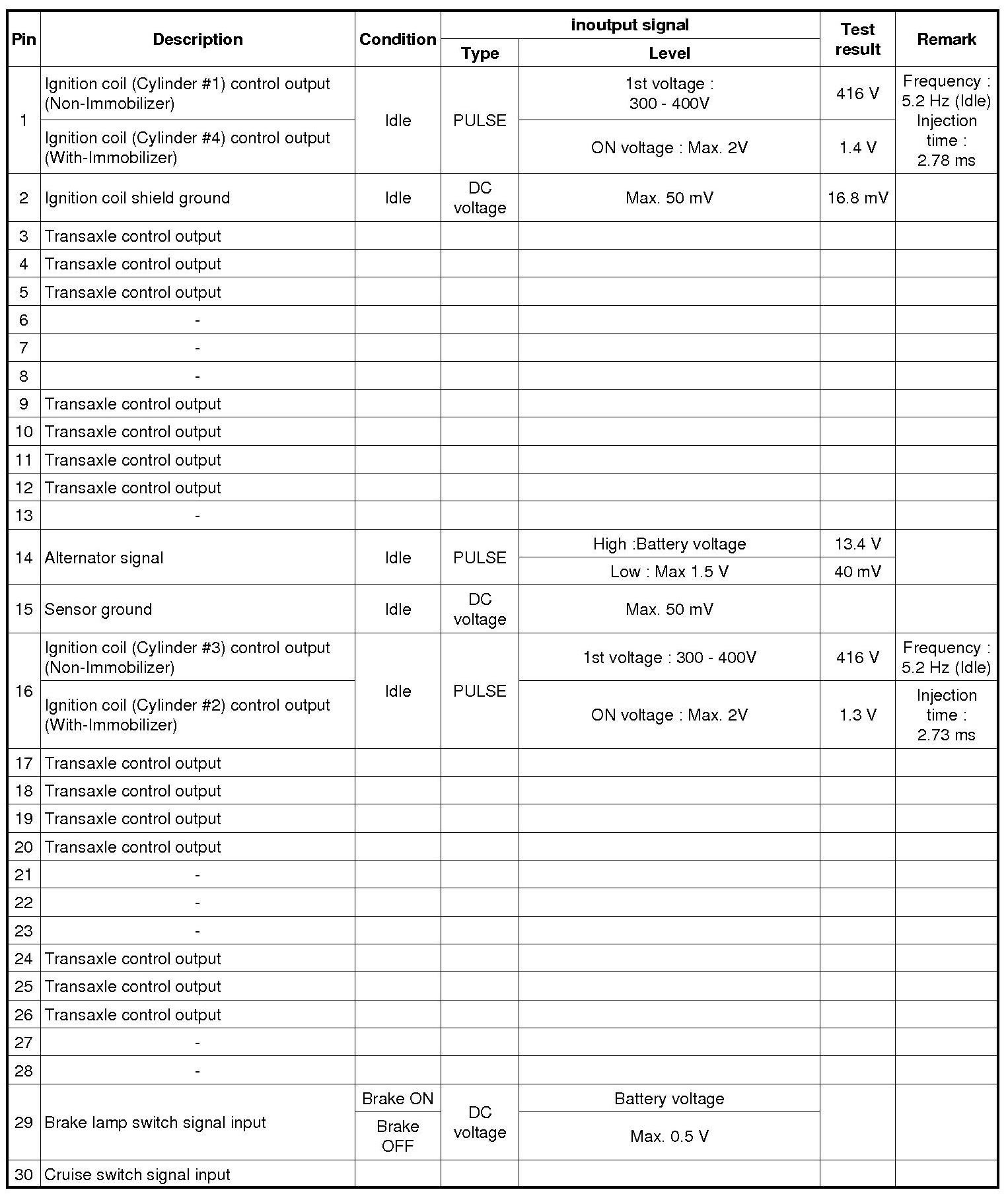 Pinout Values and Diagnostic Parameters