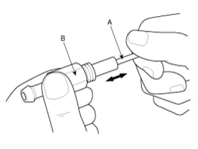 2. Insert a thin stick(A) into the PCV valve(B) from the threaded side to check that the plunger moves.