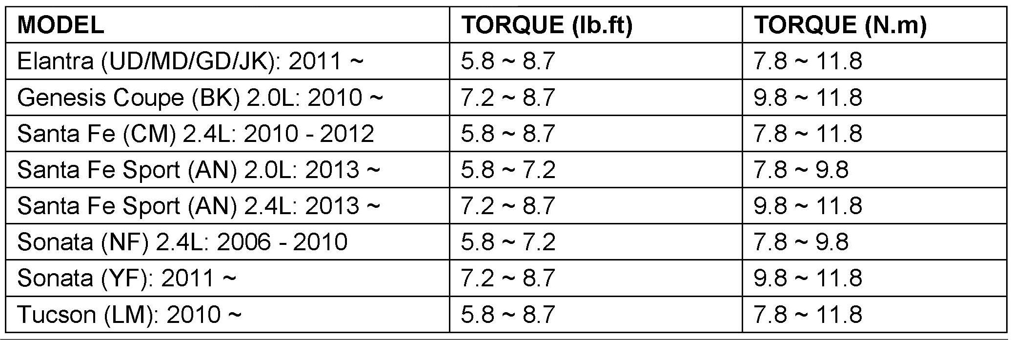 Santa Fe (CM) 2.4L: 2010 - 2012