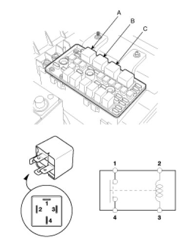 1. There should be continuity between the No.1 and No.4 terminals when power and ground are connected to the No.2 and No.3 terminals.