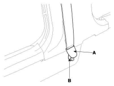 2. After raise the lower anchor cover (A), loosen the lower anchor mounting bolt (B).