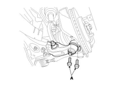3. Install the lower arm ball joint mounting bolts (A).