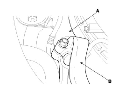 3. Install the fork(A) to the front lower arm connector(B).