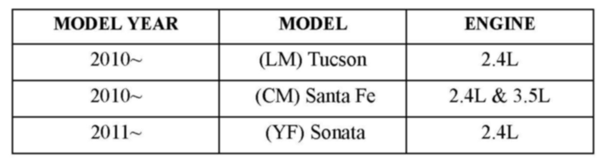 Model 2010-TUCSON, 2010-SANTA FE, 2011- SONATA