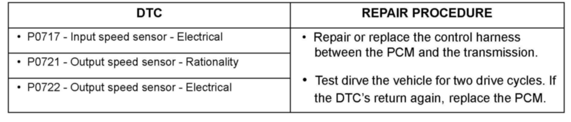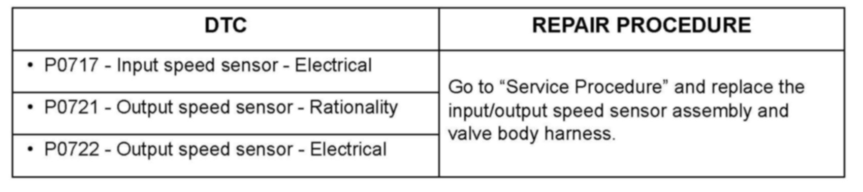 ^ Diagnostic Trouble Codes P0717, P0721 or P0722