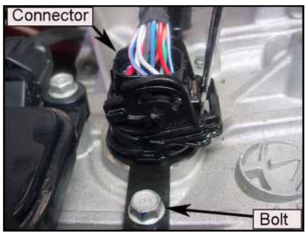 10. Remove the bolt that secures the retainer and push the connector into the transmission.