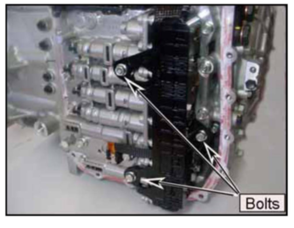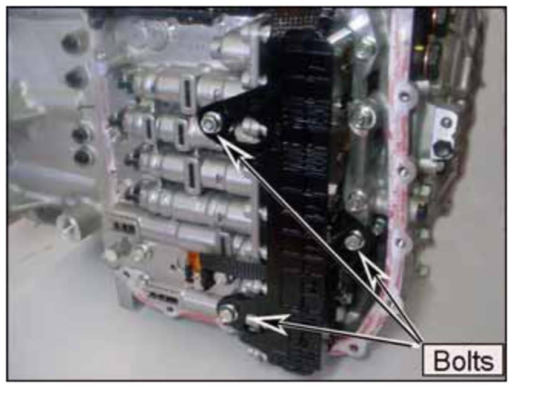 18. Remove two bolts that secure the valve body harness to the case.