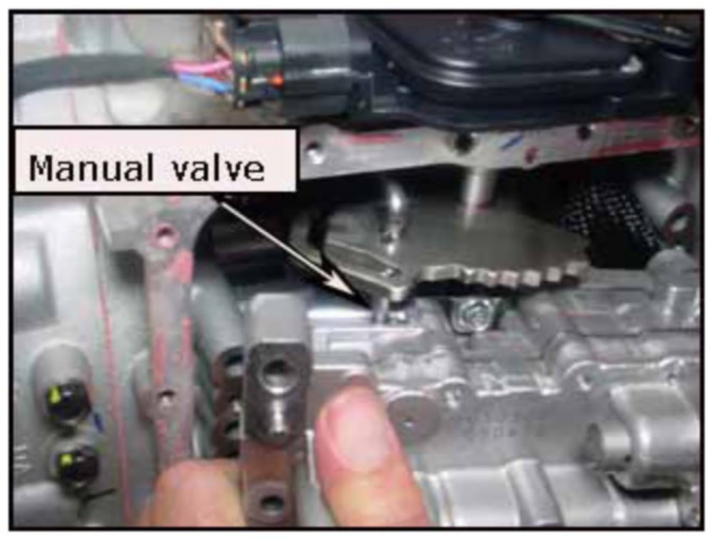 26. Align the manual shaft to the shift lever and install the valve body.