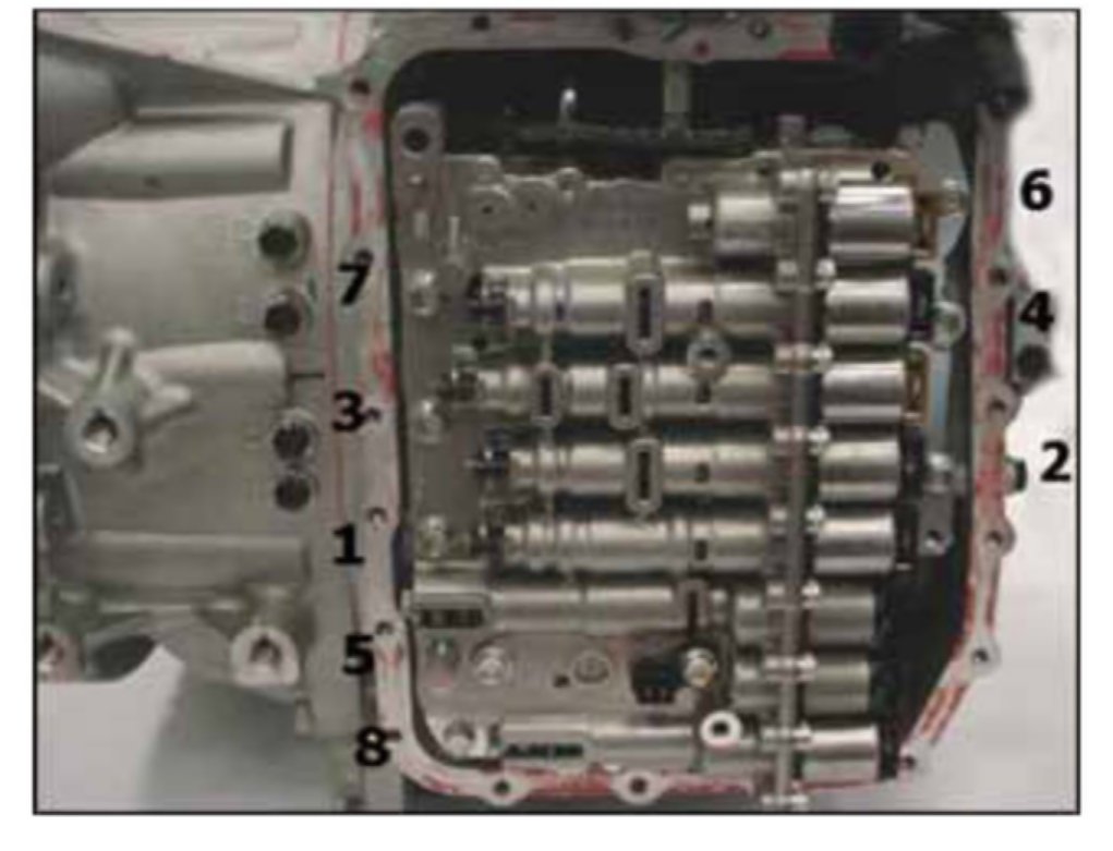 27. Install the valve body bolts and torque to specification in the order shown.